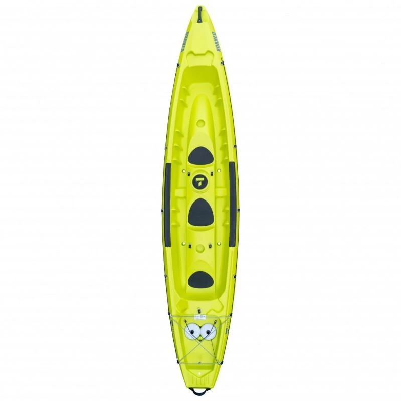 Le Borneo est un kayak Sit-On-Top double qui apporte de nombreuses innovations et notamment la possibilité de l’utiliser en solitaire avec le même confort de pagaie qu’en double. Son shape innovant aux dimensions généreuses lui confère une bonne glisse tout en gardant une stabilité confortable. Il est également équipé d’un volume arrière important avec une large plateforme de stockage. L’innovation se retrouve également dans l’équipement avec un système de roulage intégré qui se monte et se démonte en moins de 2 minutes. Un logement est prévu dans le pont pour ranger les roues en navigation. Le Bornéo peut être converti en kayak de mer. Une référence dans sa catégorie !