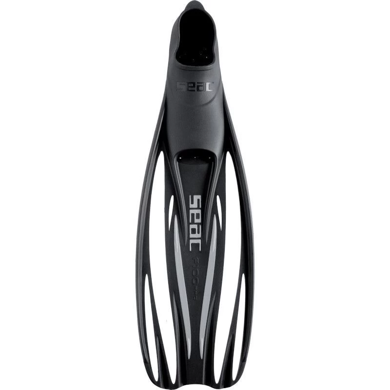 a palme Seac F 100 PRO est conçue pour un usage récréatif mais elle présente aussi beaucoup de caractéristiques des palmes professionnelles : chausson anatomique en caoutchouc thermoplastique qui maintient la palme bien ferme à chaque mouvement, Semelle de la chaussure avec inserts en caoutchouc antidérapants.